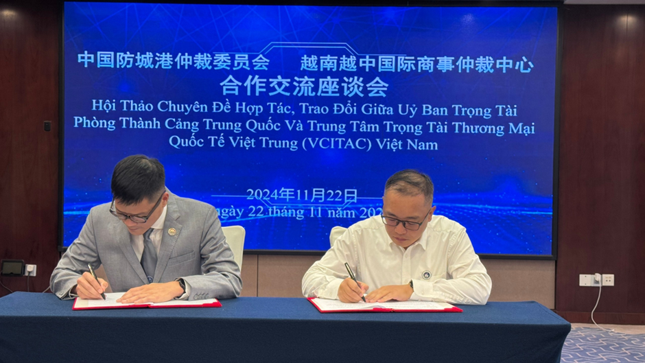 Một trong những điểm nhấn của chuyến thăm là lễ ký kết thỏa thuận hợp tác giữa Trung tâm Trọng tài Thương mại Quốc tế Việt – Trung (VCITAC) và Ủy ban Trọng tài Phòng Thành Cảng. Thỏa thuận này mở ra nhiều cơ hội hợp tác, nhằm xây dựng một hệ thống trọng tài thương mại quốc tế hiệu quả hơn, phục vụ cho các doanh nghiệp hai nước trong việc giải quyết tranh chấp phát sinh từ các giao dịch thương mại.