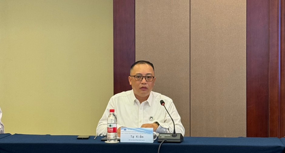 Ông Tạ Kiếm – Thư ký trưởng Ủy ban trọng tài Phòng Thành Cảng phát biểu